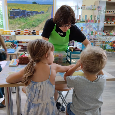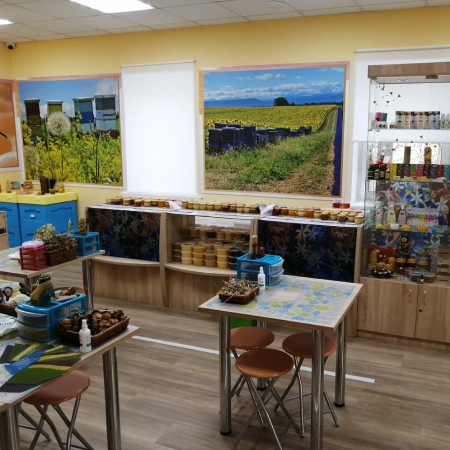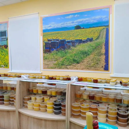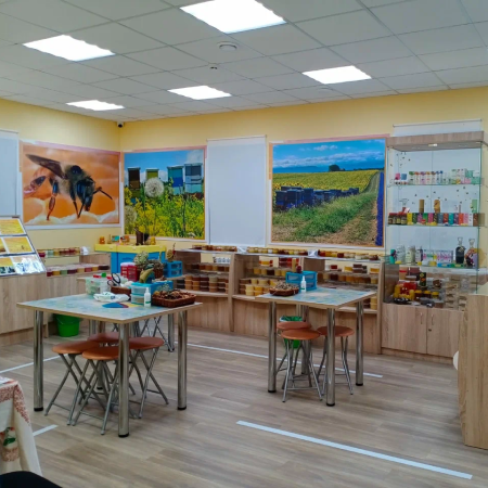 в магазине медовый домик Все желающие могут попробовать и приобрести мёд в ассортименте и различную продукцию пчеловодства. В продаже представлены пыльца, перга, забрус, маточное молочко, прополис, воск, вощина, настойки прополиса, настойки огнёвки, масла пищевые, спреи прополисные, косметика на натуральной основе.